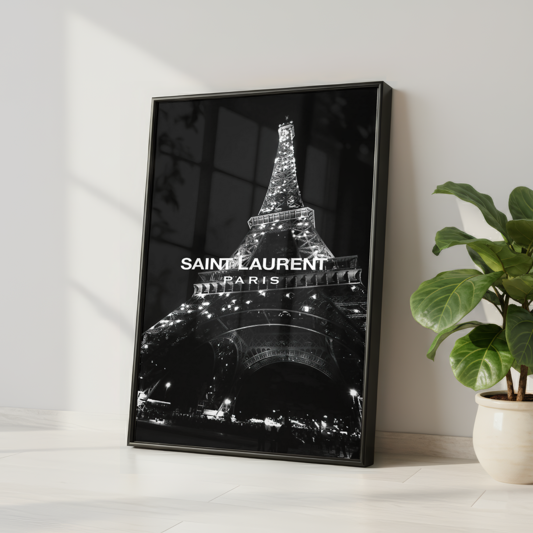 Add bold Parisian glamour to your space with this striking black and white fashion wall art print. Featuring the iconic Eiffel Tower captured in dramatic monochrome with Saint Laurent Paris–inspired styling, this piece blends timeless architecture with high-fashion attitude.