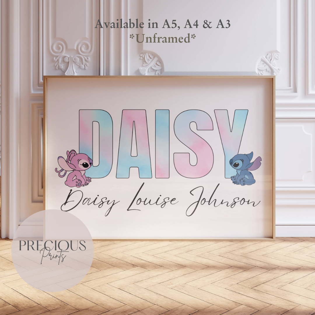 Transform your child's bedroom or nursery with our Personalised Angel Stitch Print. This premium high-gloss finish artwork showcases the beloved Disney character in angelic form, customised with your child's name for a truly special touch. Available in A5, A4, and A3 sizes to suit any wall space, this unframed print arrives ready to display in your chosen frame. Enjoy complimentary UK delivery on this charming, professionally-produced keepsake that perfectly captures the magic of childhood.