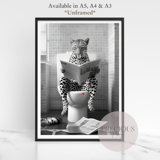Leopard Reading a Newspaper on the Toilet