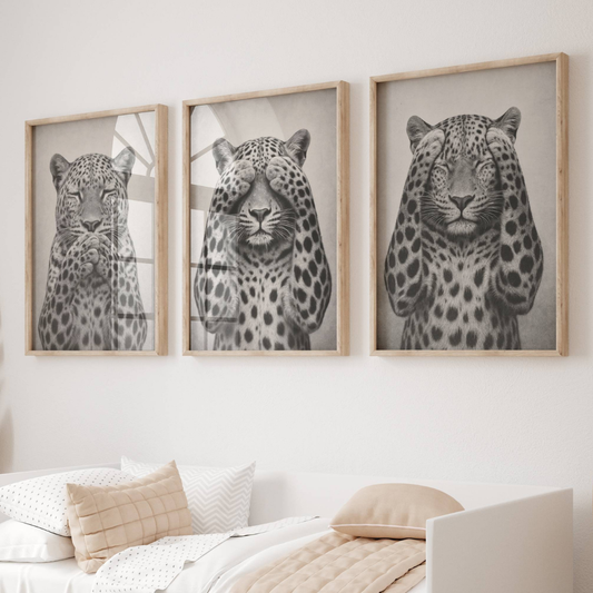 Set of 3 Black and White Leopard Prints