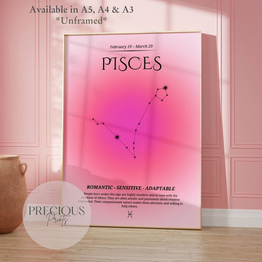 Pisces Zodiac Print / Preppy Trendy Wall Art Poster / A5 A4 A3 Unframed