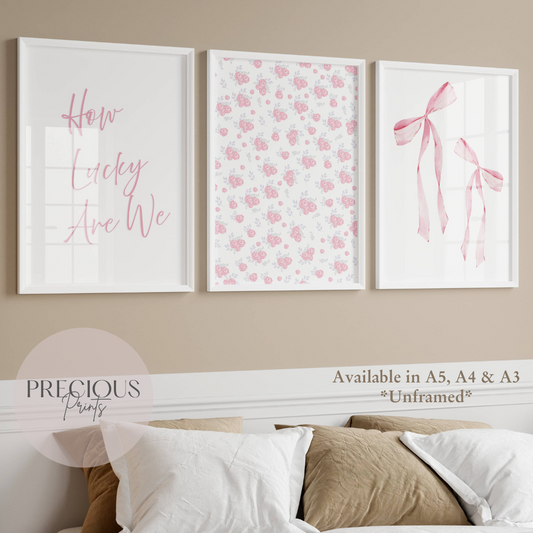 Set of 3 Coquette Preppy Pretty Prints How Lucky Are We, Bows & Flowers