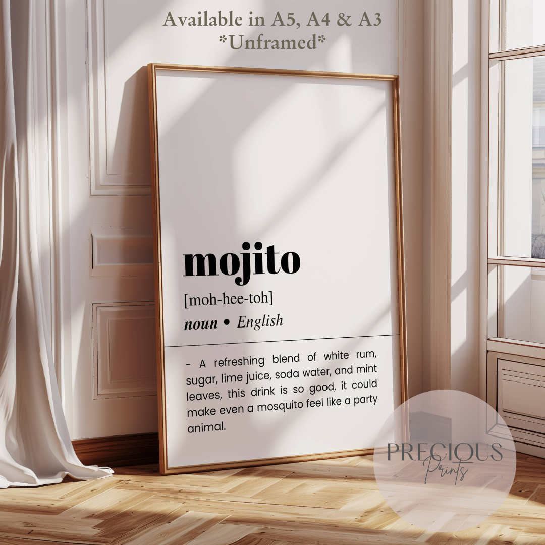 Elevate your space with a touch of whimsy with this Mojito Funny Bar Kitchen Poster Print.