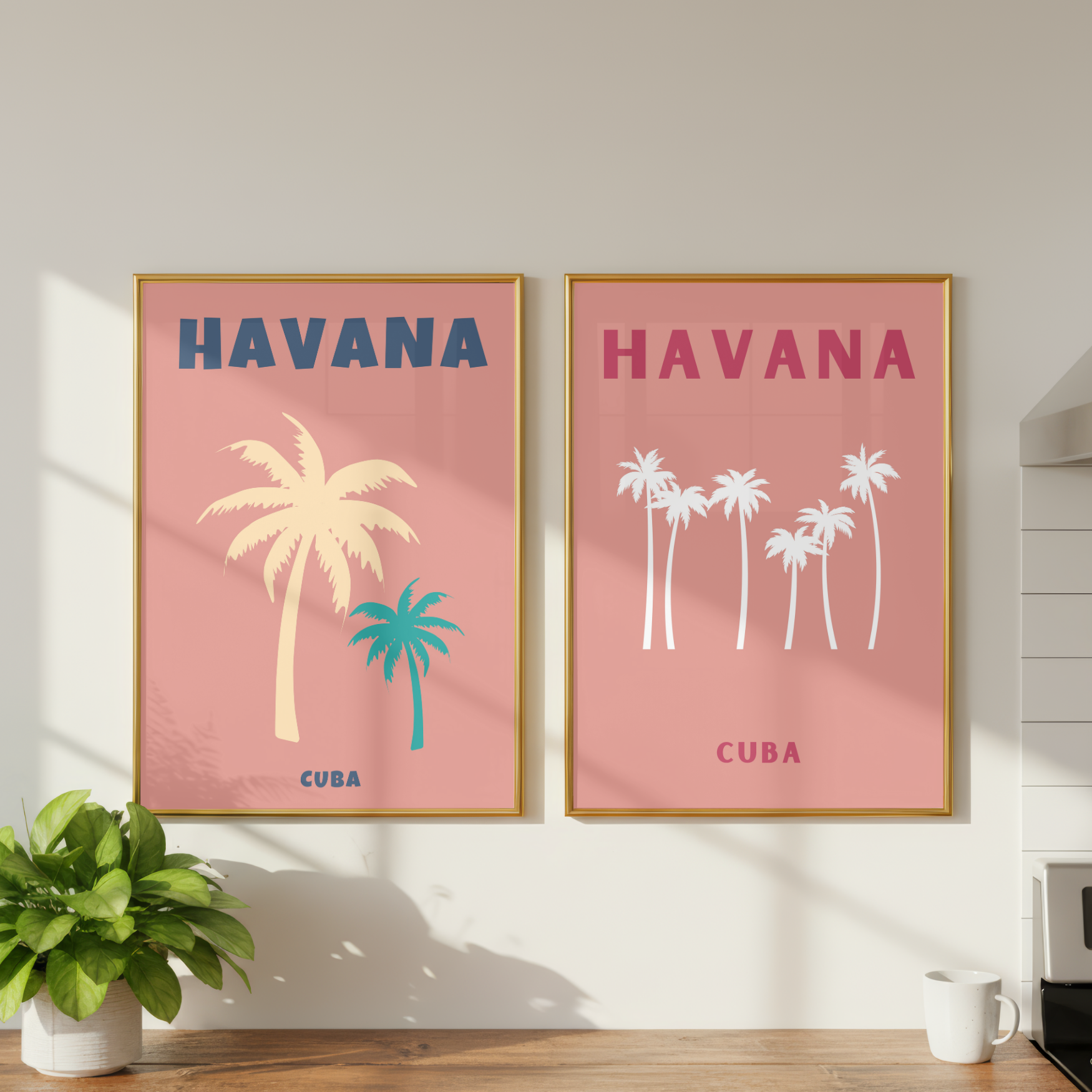 Transform your walls with this captivating Cuba Tropical Wall Art Set of 2. Featuring warm peach backgrounds and elegant palm tree silhouettes in soft cream tones, this collection captures that coveted retro travel poster aesthetic. Perfect for boho enthusiasts, warm neutral interiors, and anyone dreaming of endless summer vibes. Available in A5, A4, and A3 sizes, unframed for flexible styling. Create an instant holiday escape in any room with these timeless, sophisticated prints that bring wanderlust and warmth to your space.