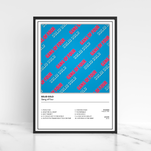 Celebrate the iconic post-punk energy of Gang of Four with this vibrant "Solid Gold" album cover poster. Available in A5, A4, and A3 sizes, this unframed print is perfect for adding a dash of rebellious style to any room. Whether you’re decking out your bedroom or jazzing up your music corner, it’s a playful nod to a classic sound with bold, eye-catching art.