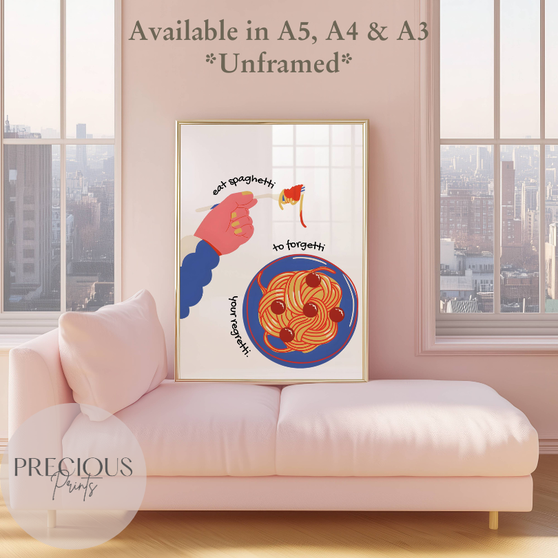Add a touch of wit to your space with this playful Spaghetti Humour Poster Print.