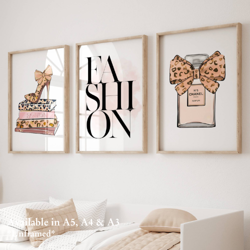 Set of 3 Pink Leopard Bows / Stilettos Wall Art
